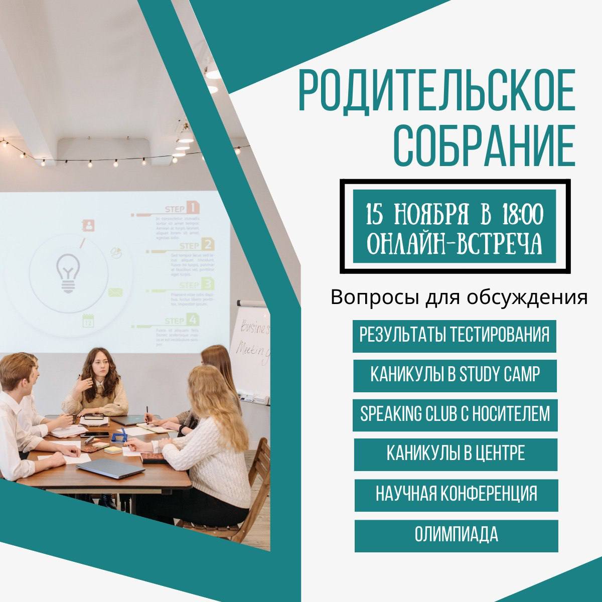 Приглашаем вас на родительское собрание в онлайн-формате 15 ноября (вторник) в 18:00. Проводит собрание руководитель языковой школы «Diamond English» - Васинчук Диана Николаевна.